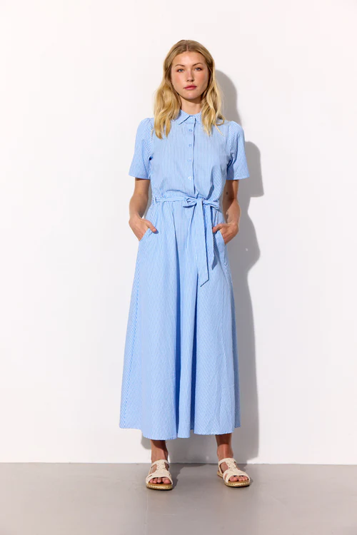 Hunkøn Gudrun dress er en smuk kjole med et diskret stribet mønster og en klassisk form.