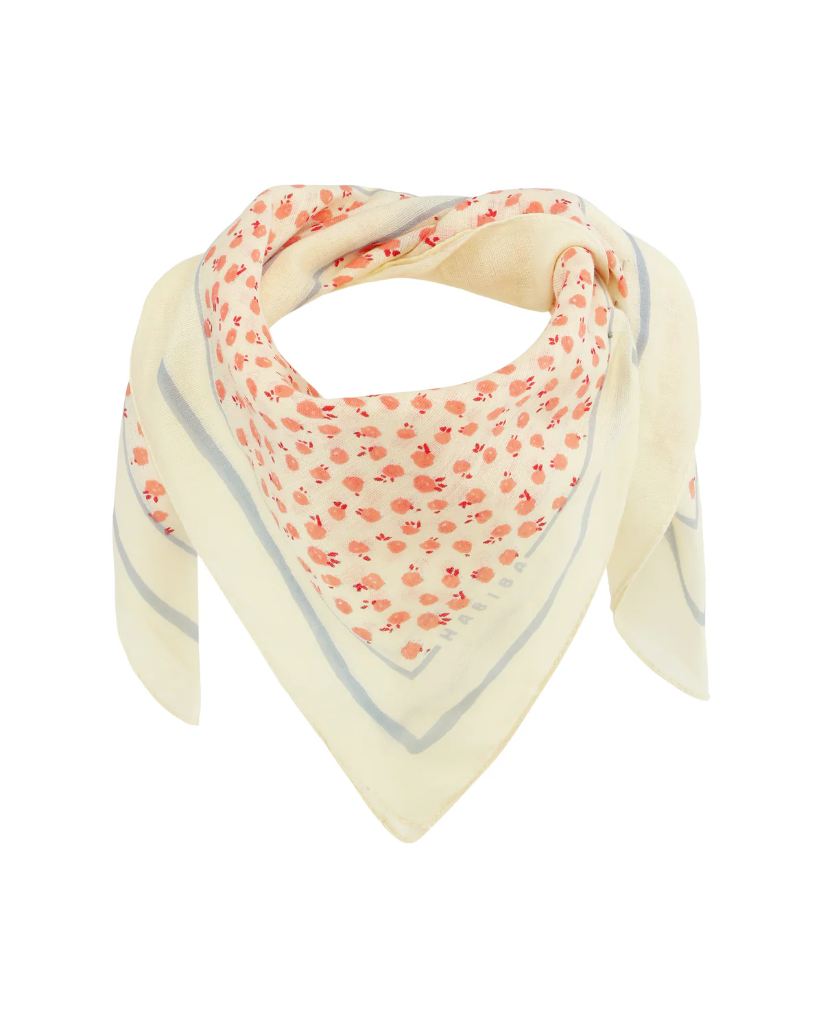 Denne bandana har et fint print af små blomster med en håndtegnet kant og et lille logo, der giver et personligt præg – fremstillet med kærlighed fra HABIBA.